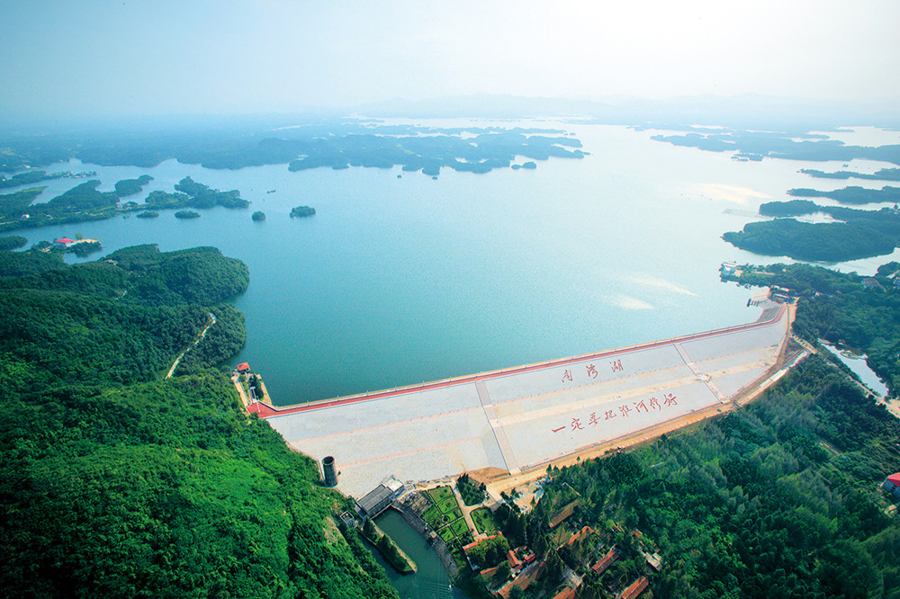 南灣水庫(kù)是建國(guó)初期淮河流域治理總體規(guī)劃的五座重點(diǎn)水庫(kù)之一,位于信陽(yáng)浉河干流上。總庫(kù)容13.55億m3,為粘土心墻砂殼壩。以其庫(kù)容大、水質(zhì)好、風(fēng)景美而聞名,2011年入選首批國(guó)家水利風(fēng)景區(qū)。獲治淮工程優(yōu)秀設(shè)計(jì)二等獎(jiǎng)。