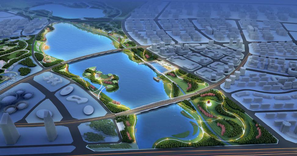 開封市運(yùn)糧河引黃調(diào)蓄工程位于開封市城鄉(xiāng)一體化示范區(qū)內(nèi)的運(yùn)糧河上。調(diào)蓄湖總庫容686萬m3,水面面積1875畝,建設(shè)內(nèi)容包括調(diào)蓄湖工程、橋梁工程和濱水景觀工程等。以“一軸兩廊”的空間結(jié)構(gòu),突出 “漕運(yùn)、夢(mèng)華”的設(shè)計(jì)主題,布置五大功能區(qū),著力打造“鄭汴之珠”。