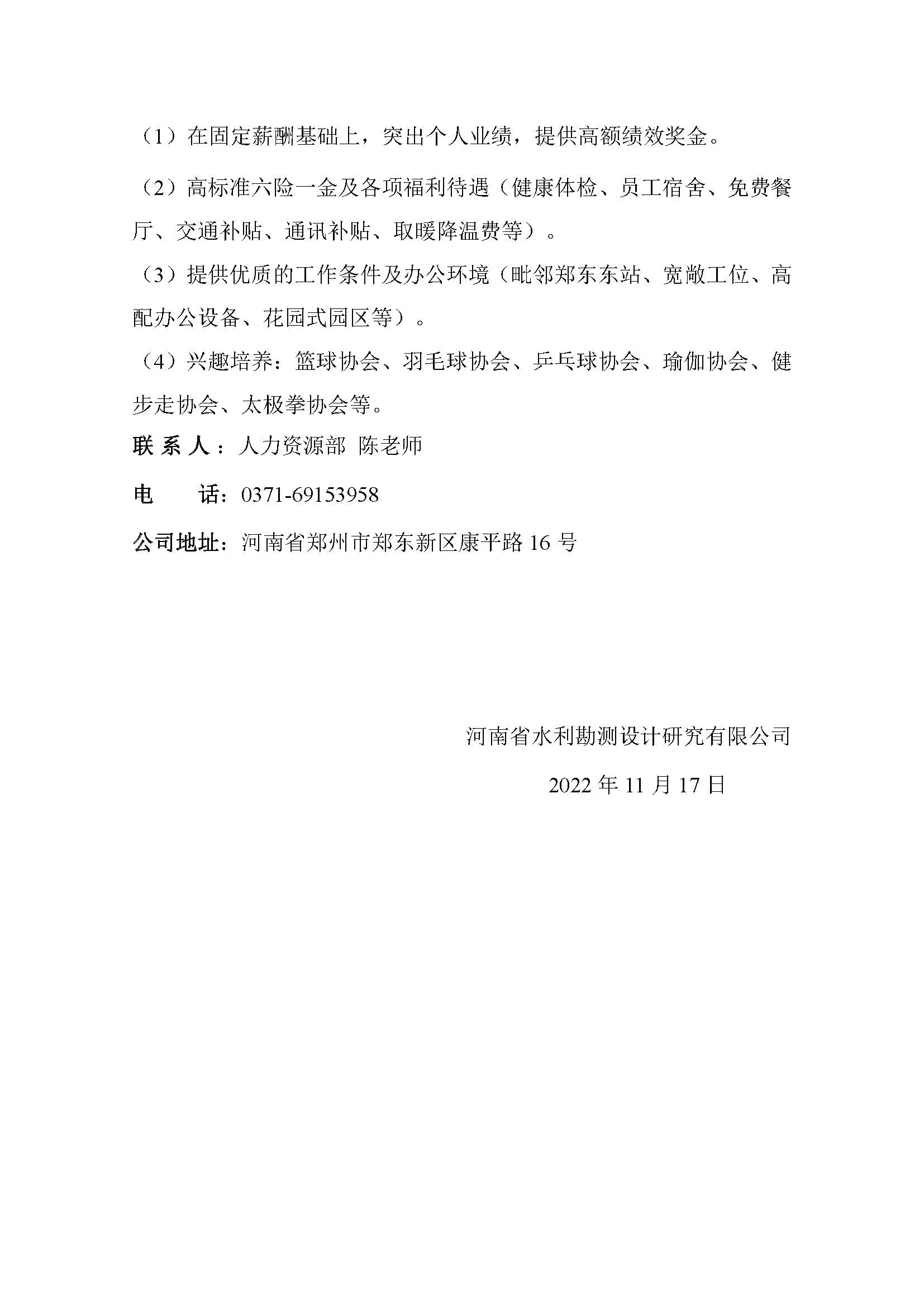 河南省水利勘測設計研究有限公司2023年社會招聘公告