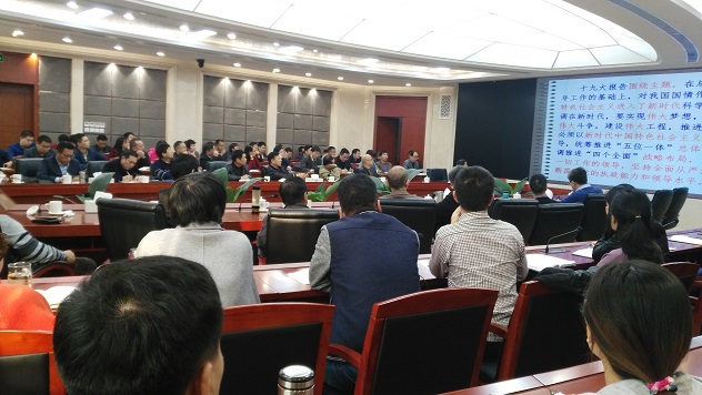 黨的十九大是全面建成小康社會(huì)決勝階段、中國(guó)特色社會(huì)主義發(fā)展關(guān)鍵時(shí)期召開(kāi)的一次十分重要的大會(huì),在我黨發(fā)展史和社會(huì)主義發(fā)展階段具有里程碑意義。為了使廣大黨員深入領(lǐng)會(huì)習(xí)總書(shū)記新時(shí)代中國(guó)特色社會(huì)主義思想,進(jìn)一步推進(jìn)公司學(xué)習(xí)貫徹黨的十九大精神工作,11月8日下午,我公司舉行“學(xué)習(xí)貫徹十九大精神專(zhuān)題報(bào)告會(huì)”,邀請(qǐng)中共鄭州市委黨校張文化教授作輔導(dǎo)報(bào)告。公司董事長(zhǎng)、黨委書(shū)記翟淵軍主持會(huì)議,公司中層以上管理人員、黨員共計(jì)130余人參加會(huì)議。