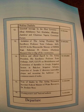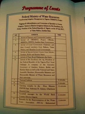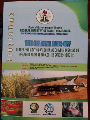 2017年7月18日,由尼日利亞聯(lián)邦政府向世界銀行貸款的Bakolori灌區(qū)項(xiàng)目開(kāi)工典禮在工程現(xiàn)場(chǎng)隆重舉行。該項(xiàng)目受到了尼日利亞政府的高度重視,多位政要和當(dāng)?shù)赝镣跚蹰L(zhǎng)受邀參加典禮儀式。按照典禮議程,尼日利亞目前最高掌權(quán)人代總統(tǒng)Prof. Yemi Osibanjo出席開(kāi)工典禮,講話并親自為工程開(kāi)工剪彩,由于突發(fā)的暴雨天氣,代總統(tǒng)未能按照既定的時(shí)間到達(dá)現(xiàn)場(chǎng)。最后,由尼日利亞聯(lián)邦水資源部部長(zhǎng)Engr. Suleiman Hussein Adamu主持典禮,并對(duì)該項(xiàng)目進(jìn)行了開(kāi)工儀式剪彩,世行官員、當(dāng)?shù)卣?dāng)?shù)厍蹰L(zhǎng)、農(nóng)民代表、咨詢方、承包商等參加了項(xiàng)目開(kāi)工典禮。