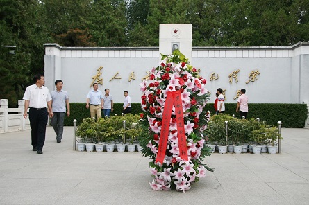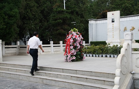 一進入蘭考縣城,紅色的黨旗,鮮明的文化標語,干凈整潔的裕祿大道,讓大家深深感受到焦裕祿對這個城市的影響,以及蘭考人民對他的愛戴。上午10時,在莊嚴肅穆的焦裕祿烈士墓前,支部書記曹德志同志,帶領黨員向革命烈士焦裕祿同志敬獻花籃,并向革命烈士三鞠躬。