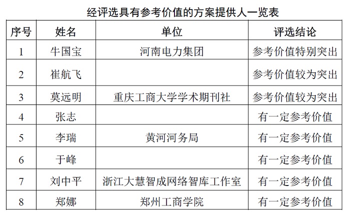公司項目團隊按照客觀、公平、公正的原則,選出了參考價值特別突出的成果1名,報酬5000元;參考價值較為突出的成果2名,報酬各3000元;有一定參考價值的成果5名,報酬各1000元。項目團隊將于近期與評選出的具有參考價值的成果提供人聯系并按約定支付報酬。經評選具有參考價值的方案投稿內容詳見附件,特此公告。
