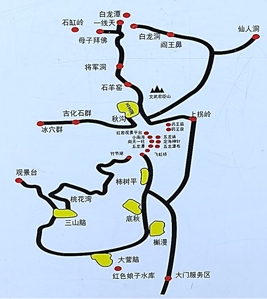 秋溝景區(qū)位于新鄉(xiāng)市輝縣南寨鎮(zhèn)境內(nèi),總面積14平方公里。景區(qū)三面環(huán)山,海拔800多米。景區(qū)內(nèi)山高林密,峽谷壁垂,主要有五龍峽、五龍?zhí)丁⒛咸煲恢⑿∧虾?、紅色娘子水庫、桃花灣等景點(diǎn)。因?yàn)檫^去溝內(nèi)盡是楸樹,故取名為楸溝,后簡(jiǎn)化為秋溝。