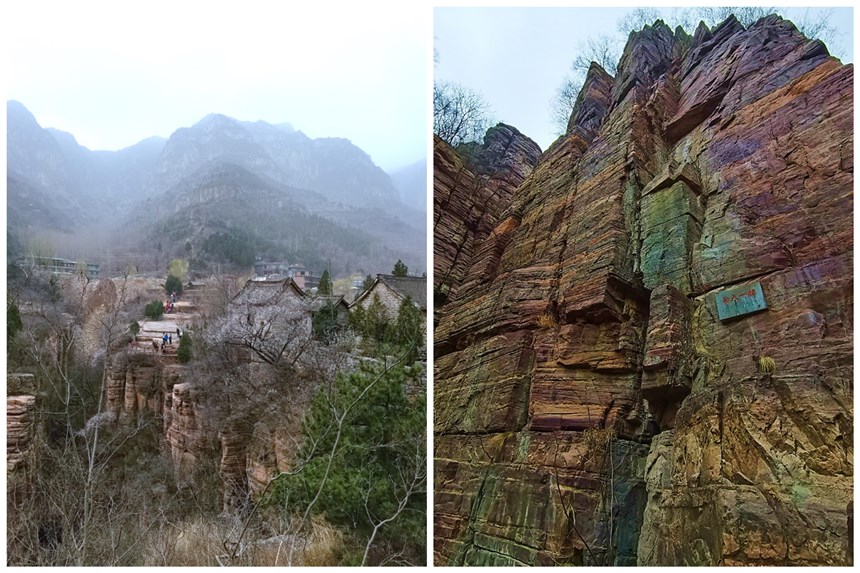 五龍峽兩側(cè)是高入云端、峻峭的紅崖,谷底是碧綠的池水,一處“飛虹橋”橫在水面上,別有一番景致。進(jìn)入谷底深處,前方一座直上直下的山峰“南天一注”屹立在谷底盡頭。大家沿著山體一側(cè)的“云梯”攀升,經(jīng)過“定海神針”、“小南海”、“系情谷”等景點(diǎn),一直來到紅色娘子水庫大壩處,最終到達(dá)山頂平臺(tái)。