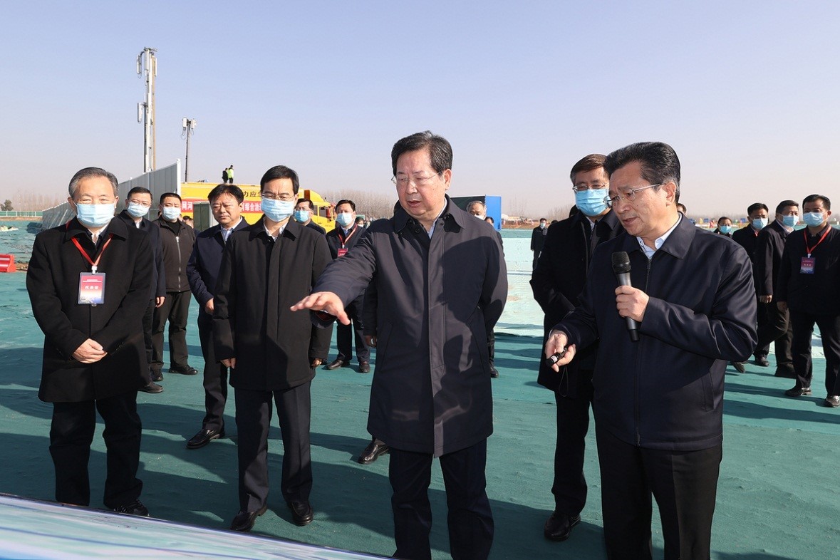 開(kāi)工動(dòng)員會(huì)后,樓陽(yáng)生、王凱來(lái)到賈魯河綜合治理工程施工現(xiàn)場(chǎng),實(shí)地察看了導(dǎo)流明渠工程、上下游圍堰、河槽疏浚段、永久堤防標(biāo)準(zhǔn)段規(guī)劃施工情況。