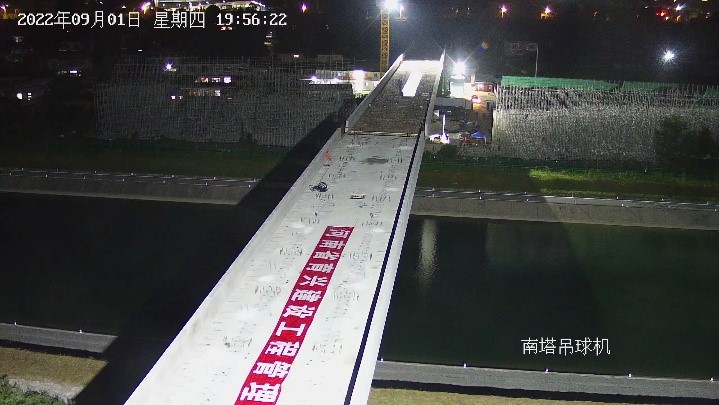 2022年8月31日下午,引熱入安長輸供熱管網(wǎng)工程跨越南水北調中線總干渠管道橋,在四套同步、自動連續(xù)系統(tǒng)牽引下,歷經90分鐘精密施工,完成高空轉體90°,實現(xiàn)了兩座單重8000噸、單長64米的跨渠管道橋在南水北調總干渠上空的精準對接。