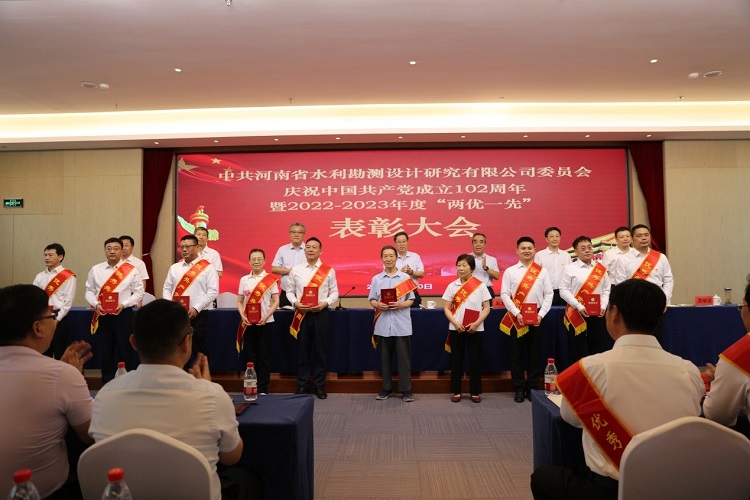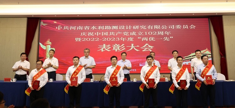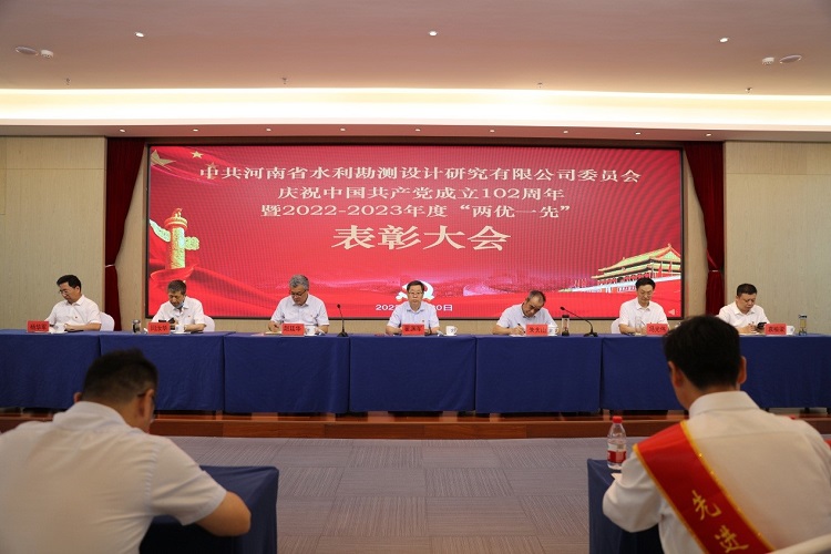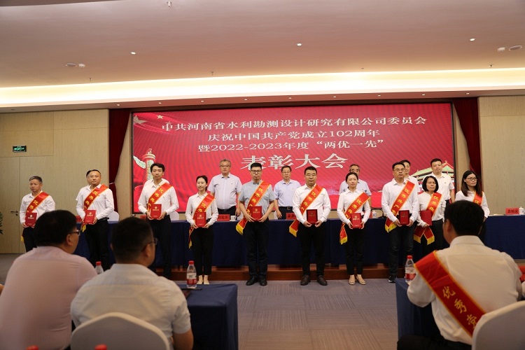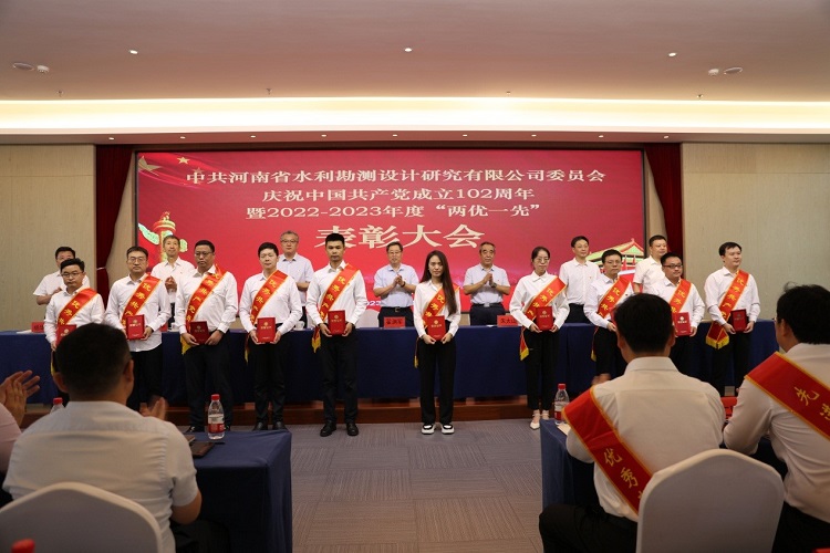 6月30日上午,中共河南省水利勘測設(shè)計(jì)研究有限公司委員會(huì)隆重舉行慶祝中國共產(chǎn)黨成立102周年暨2022-2023年度“兩優(yōu)一先”表彰大會(huì),熱烈慶祝偉大的中國共產(chǎn)黨102歲華誕,系統(tǒng)總結(jié)公司兩年來黨建工作,表彰2022-2023年度優(yōu)秀共產(chǎn)黨員、優(yōu)秀黨務(wù)工作者和先進(jìn)黨支部,動(dòng)員全體共產(chǎn)黨員向先進(jìn)學(xué)習(xí)、向模范看齊,進(jìn)一步激發(fā)廣大黨員群眾干事創(chuàng)業(yè)動(dòng)力和熱情,共同為豫水設(shè)計(jì)的美好明天團(tuán)結(jié)奮斗。會(huì)議由公司黨委委員、總經(jīng)理朱太山主持。
