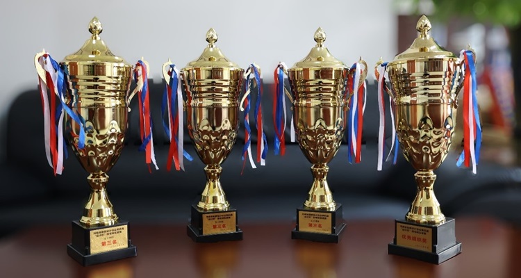 大賽閉幕式上,公司總經(jīng)理朱太山受邀為取得女子單打前四名的選手頒發(fā)獎杯并合影留念。