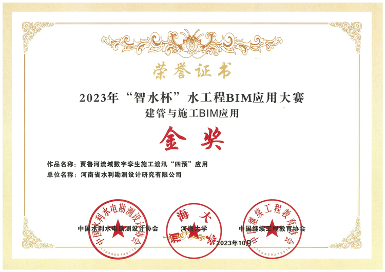 近日,2023年“智水杯”水工程BIM應(yīng)用大賽獲獎項(xiàng)目公示。豫水設(shè)計(jì)公司申報(bào)項(xiàng)目《賈魯河流域數(shù)字孿生施工度汛“四預(yù)”應(yīng)用》獲建管與施工BIM應(yīng)用金獎;《水工程智慧建造+數(shù)字化運(yùn)維關(guān)鍵場景數(shù)字孿生應(yīng)用》獲全生命期BIM應(yīng)用銀獎。