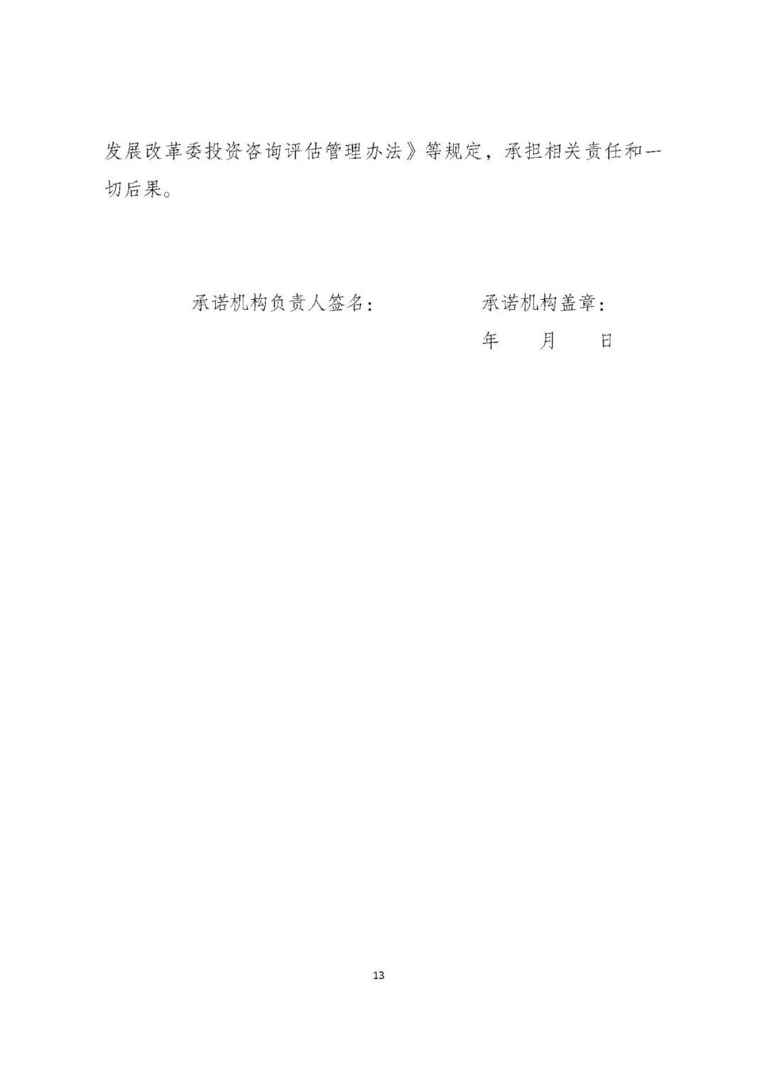 第十三條國家發展改革委投資司每年可選擇一定數量的咨詢評估機構,對其向國家發展改革委出具的咨詢評估報告的質量,以及專業能力、人員配備等情況,組織第三方機構或專家進行評價、核查和監督檢查。
