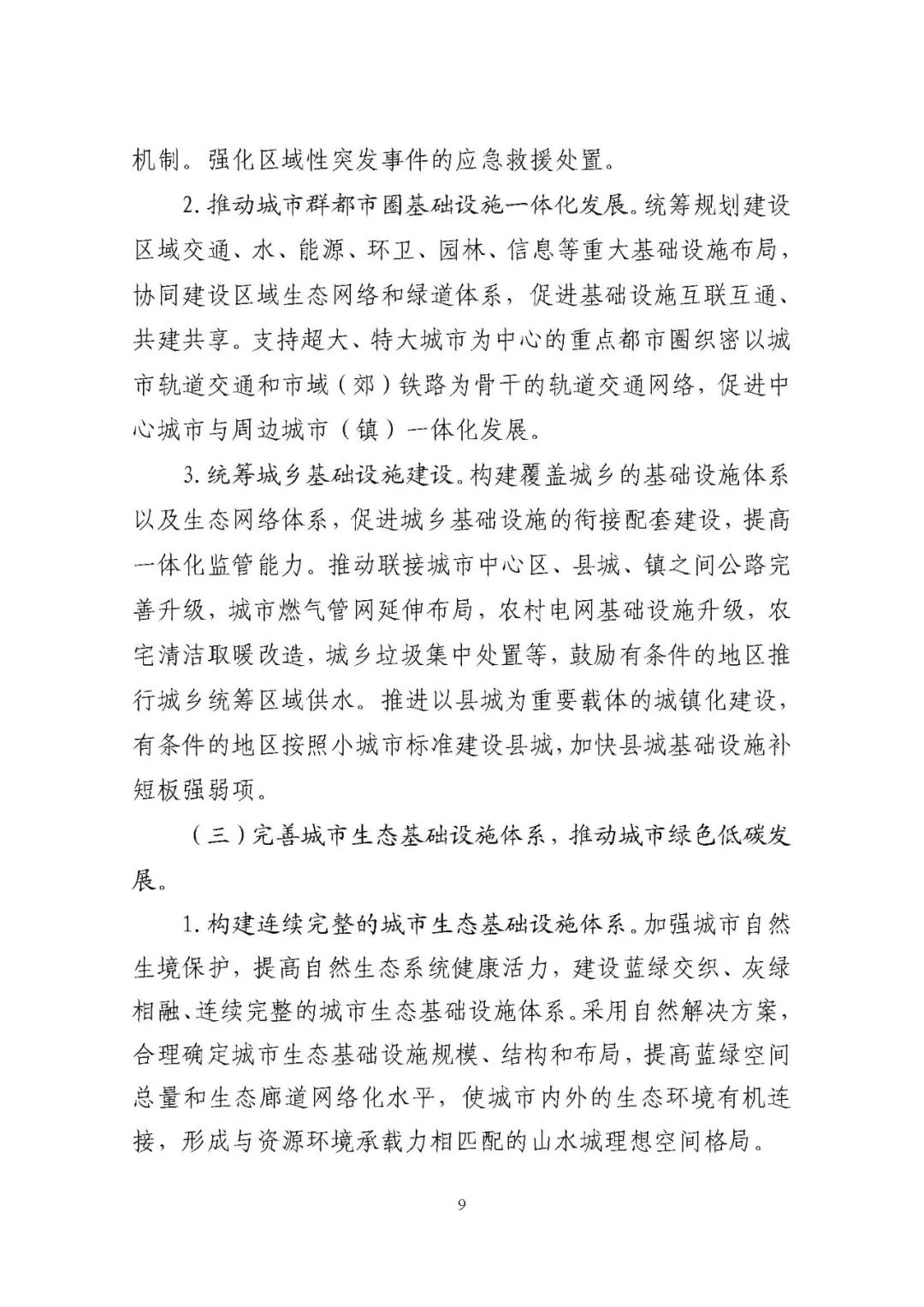 《規劃》圍繞構建系統完備、高效實用、智能綠色、安全可靠的現代化基礎設施體系,提出4方面重點任務。一是推進城市基礎設施體系化建設,增強城市安全韌性能力;二是推動城市基礎設施共建共享,促進形成區域與城鄉協調發展新格局;三是完善城市生態基礎設施體系,推動城市綠色低碳發展;四是加快新型城市基礎設施建設,推進城市智慧化轉型發展。