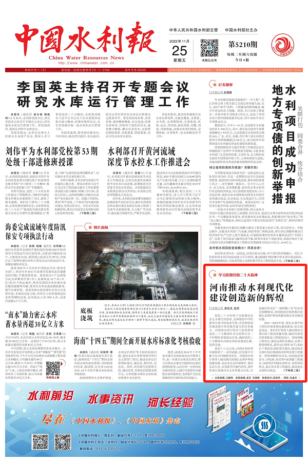 黨的二十大吹響了全面建設(shè)社會(huì)主義現(xiàn)代化國(guó)家、全面推進(jìn)中華民族偉大復(fù)興的奮進(jìn)號(hào)角,在黨和國(guó)家發(fā)展進(jìn)程中具有極其重大的歷史意義。河南省水利廳把學(xué)習(xí)宣傳貫徹黨的二十大精神作為當(dāng)前和今后一個(gè)時(shí)期的首要政治任務(wù),確保黨的二十大精神在河南水利系統(tǒng)落地生根、見(jiàn)到實(shí)效。